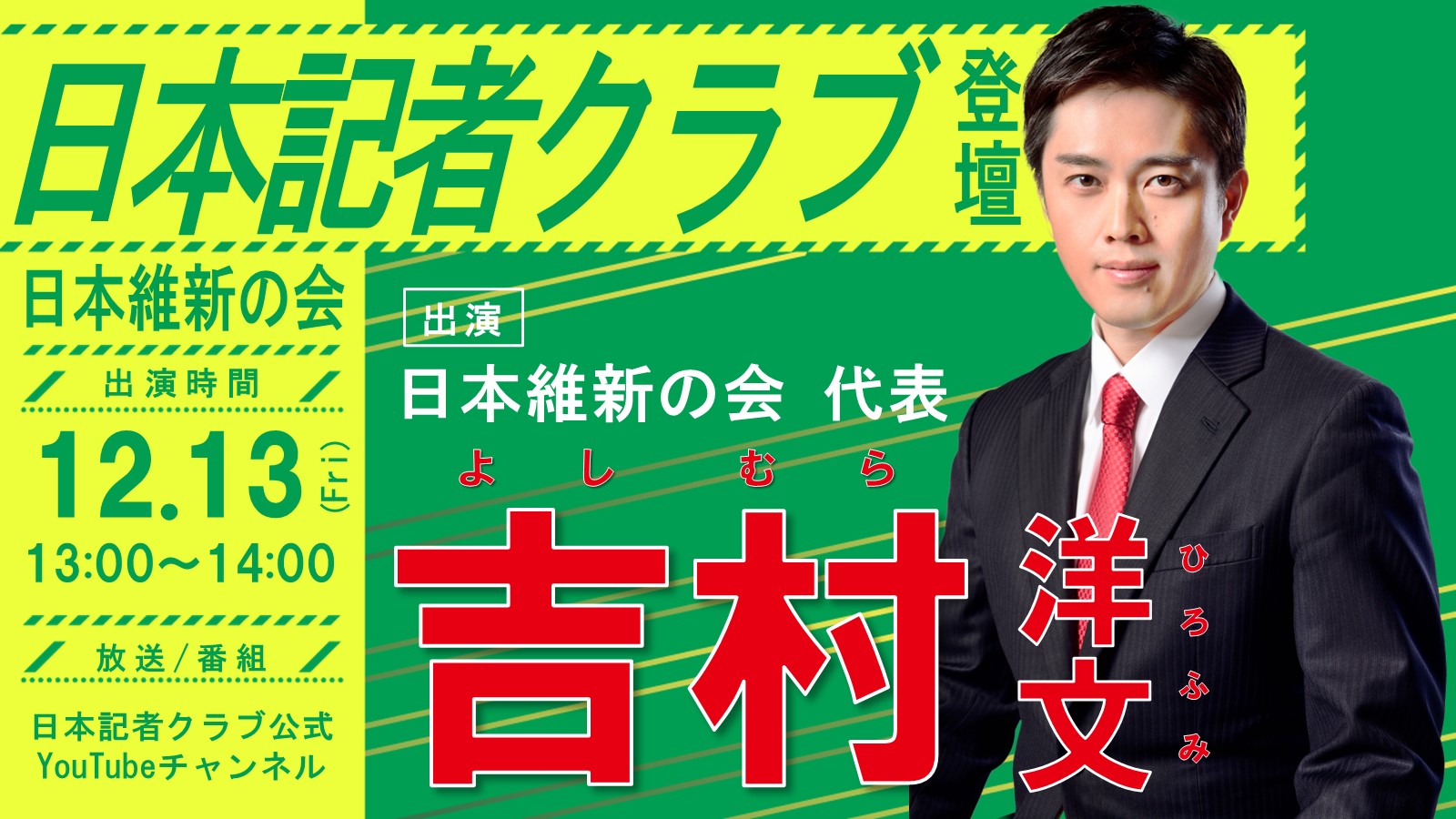 【日本記者クラブ】吉村洋文日本維新の会代表(大阪維新の会代表)会見登壇のお知らせ