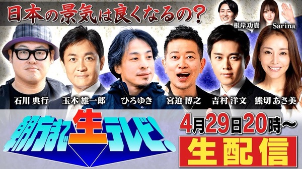 出演者:ひろゆきさん・玉木雄一郎 国民民主党代表・石川典行さん・宮迫博之さん・熊切あさみさん・根岸功貴さん・Sarinaさん