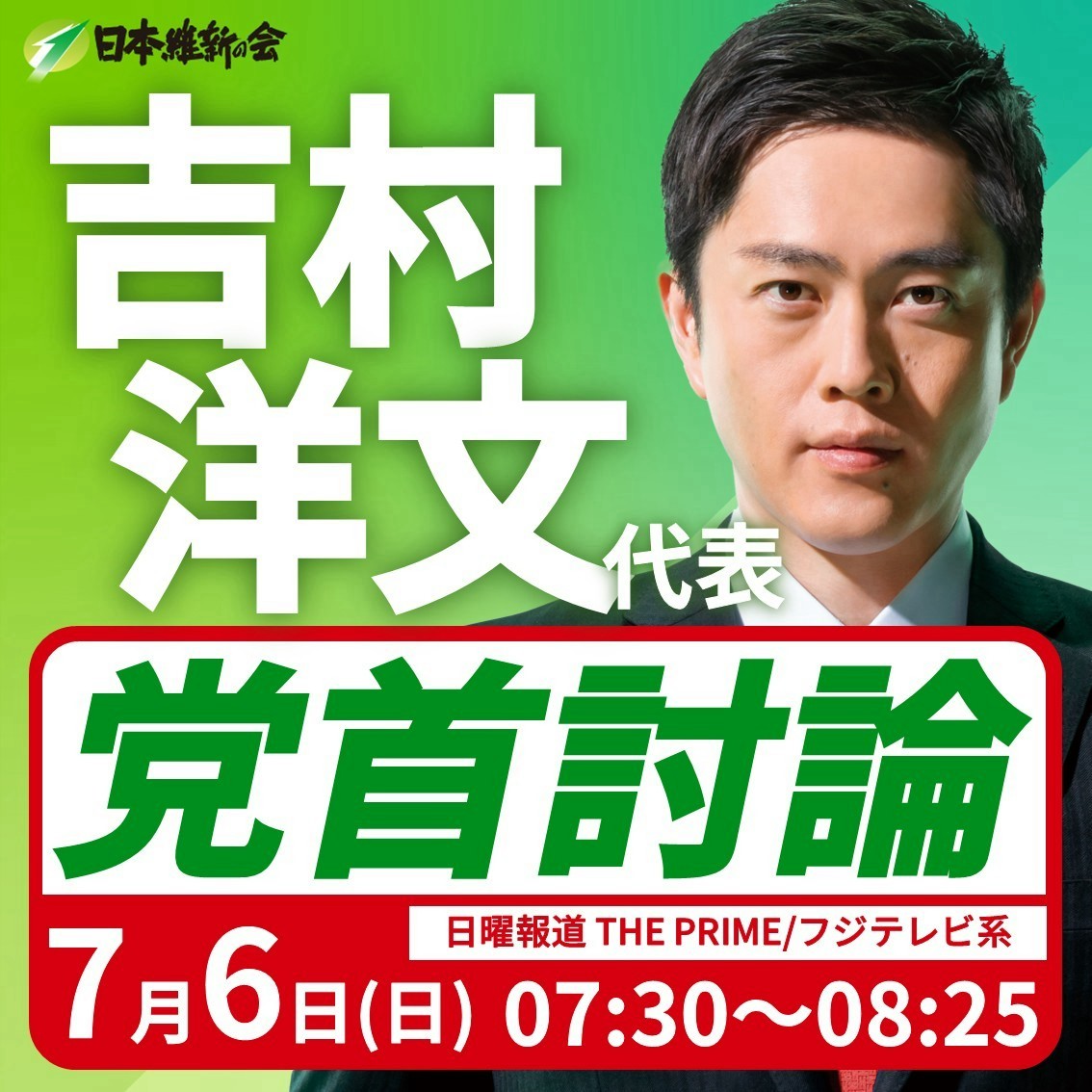 【 党首討論/日曜報道 THE PRIME 】吉村洋文 代表(大阪維新の会代表)番組生出演のお知らせ