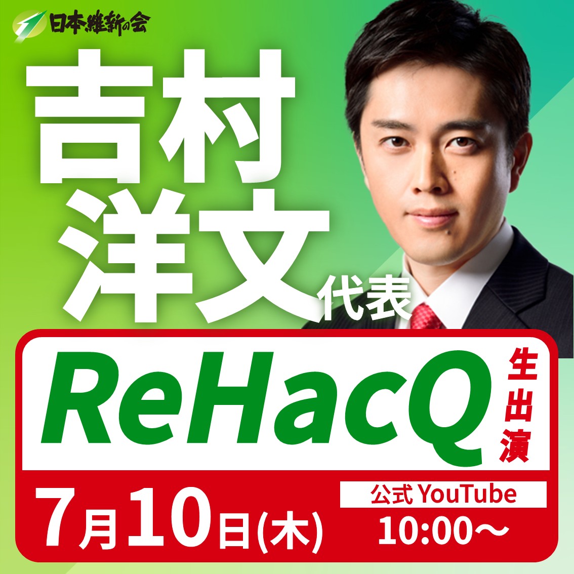 【 ReHacQ 】吉村洋文 代表(大阪維新の会代表)番組生出演のお知らせ
