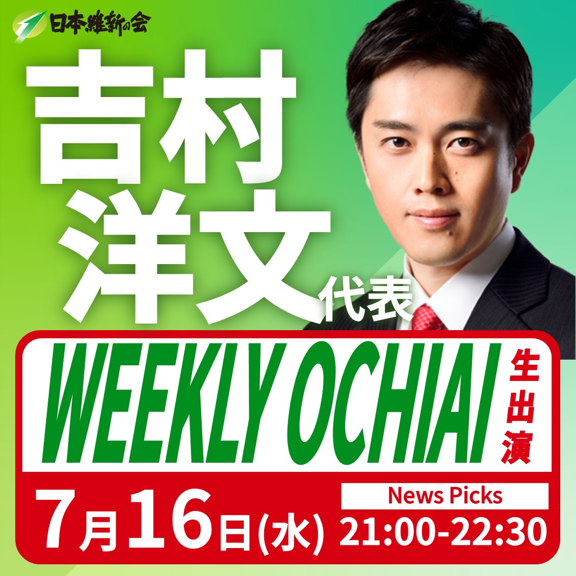 【 WEEKLY OCHIAI シーズン5 】吉村洋文 代表(大阪維新の会代表)番組生出演のお知らせ