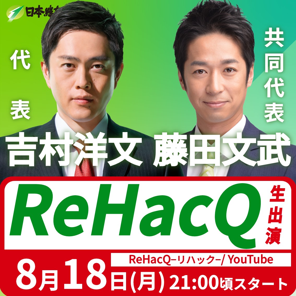 【ReHacQ−リハック−】吉村洋文 代表・藤田文武 日本維新の会共同代表(大阪12区衆議院議員) 番組生出演のお知らせ