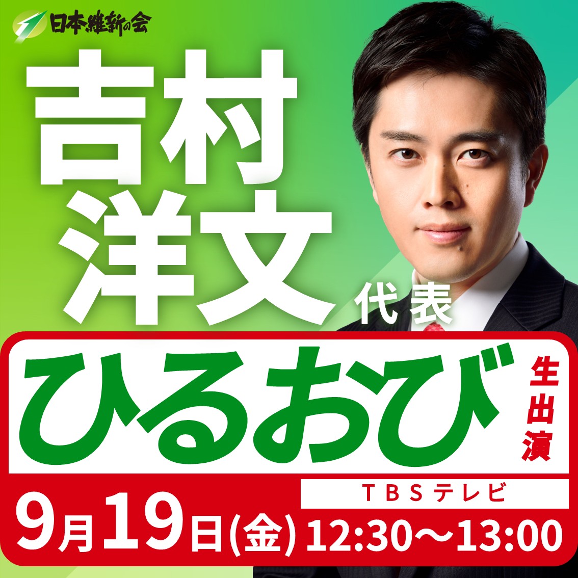 【ひるおび】吉村洋文 日本維新の会代表(大阪維新の会代表)番組生出演のお知らせ