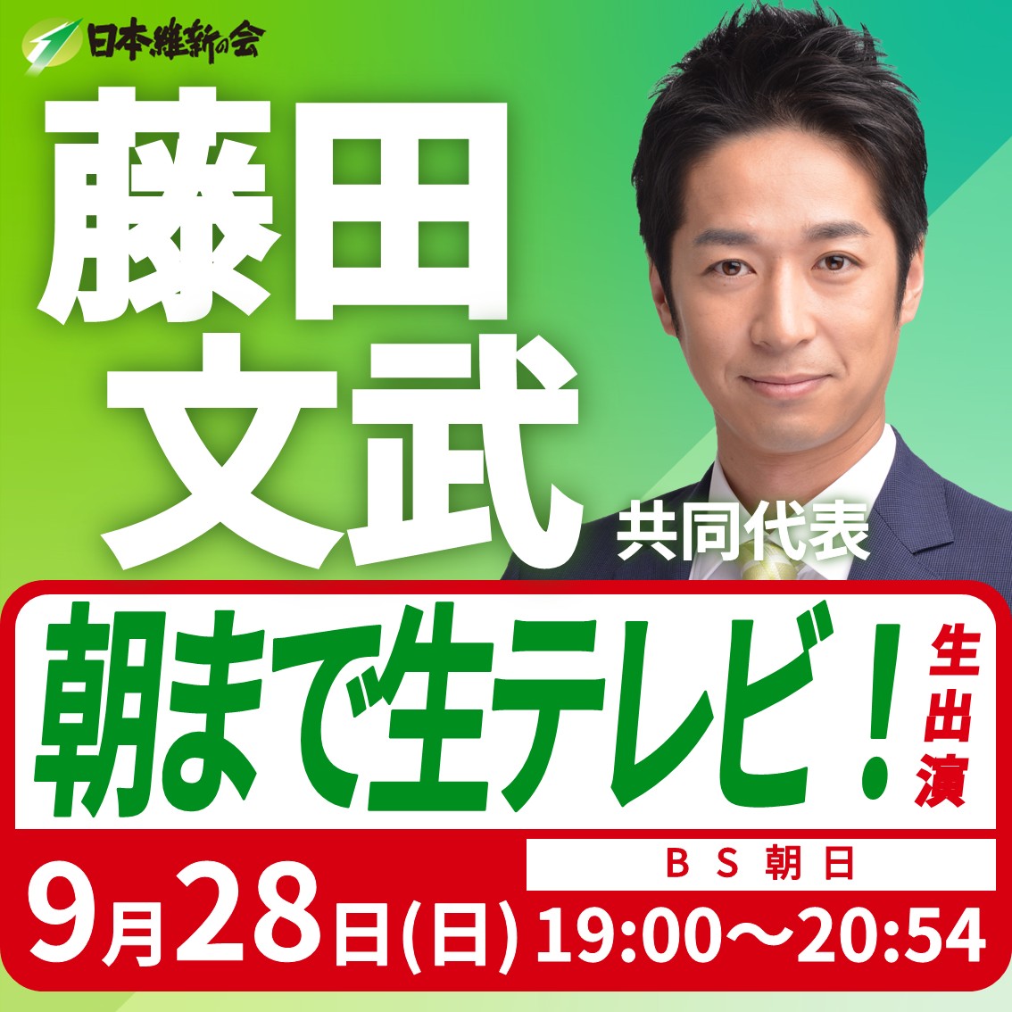 ニュース シェアする ツイートする 2025.09.28出演情報 【朝まで生テレビ!】藤田文武 日本維新の会共同代表(大阪12区衆議院議員)番組生出演のお知らせ ━━━━【出演情報】━━━━ 日 時:令和7年9月28日(日) 19:00~20:54 放 送:BS朝日 番組名:朝まで生テレビ! テーマ:激論!石破退陣... ド~なる?!日本の政治 ぜひご視聴ください! 前へ 次へ