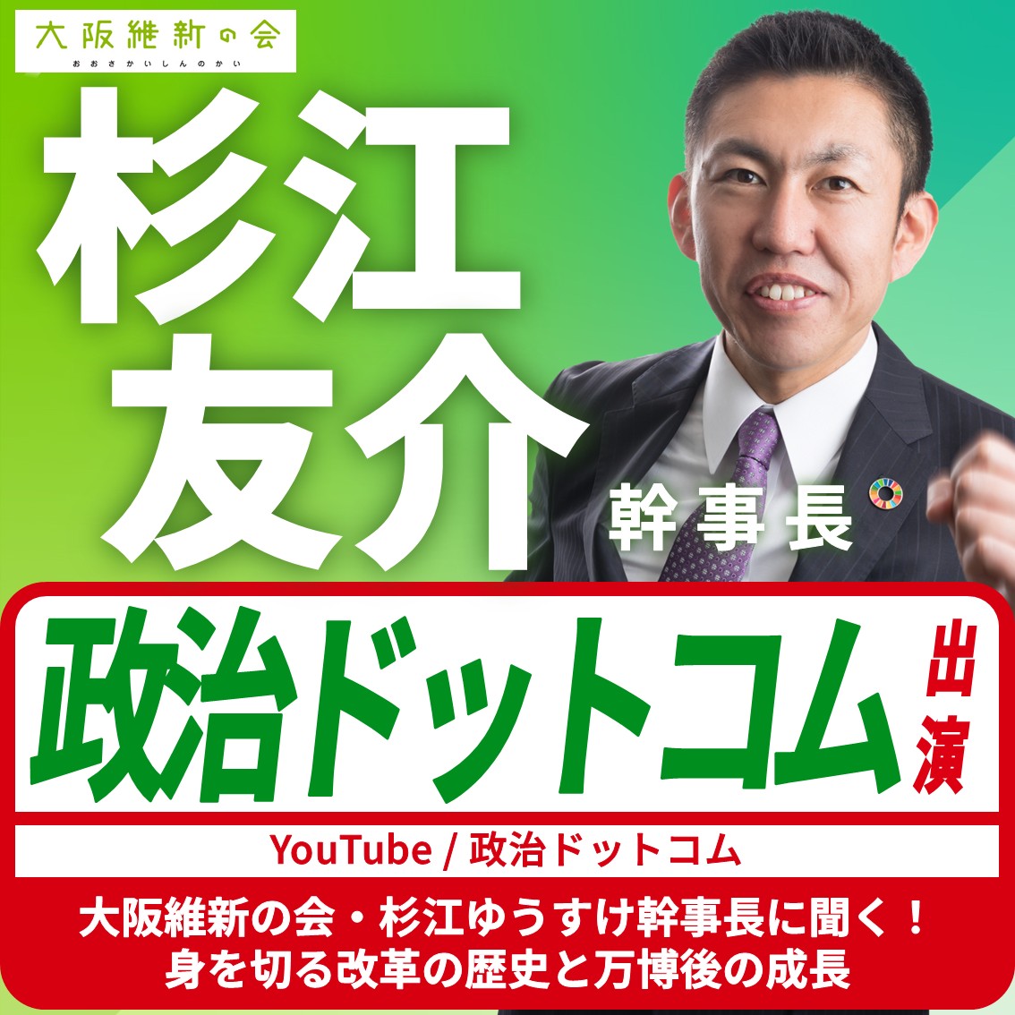 【政治ドットコム】杉江友介 幹事長 YouTube番組出演のお知らせ