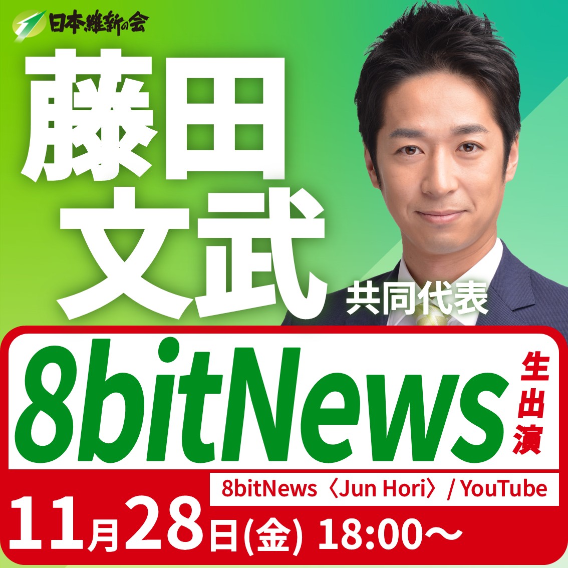 【8bitNews〈Jun Hori〉】藤田文武 日本維新の会共同代表(大阪12区衆議院議員)YouTube番組出演のお知らせ