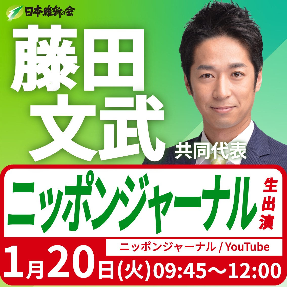 【ニッポンジャーナル】藤田文武 日本維新の会共同代表(大阪12区衆議院議員)番組生出演のお知らせ