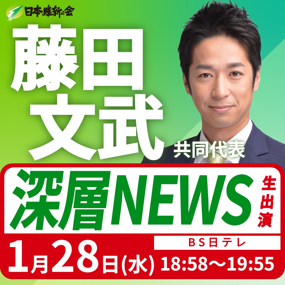 【深層NEWS】藤田文武 日本維新の会共同代表(衆議院大阪12区候補者)番組生出演のお知らせ
