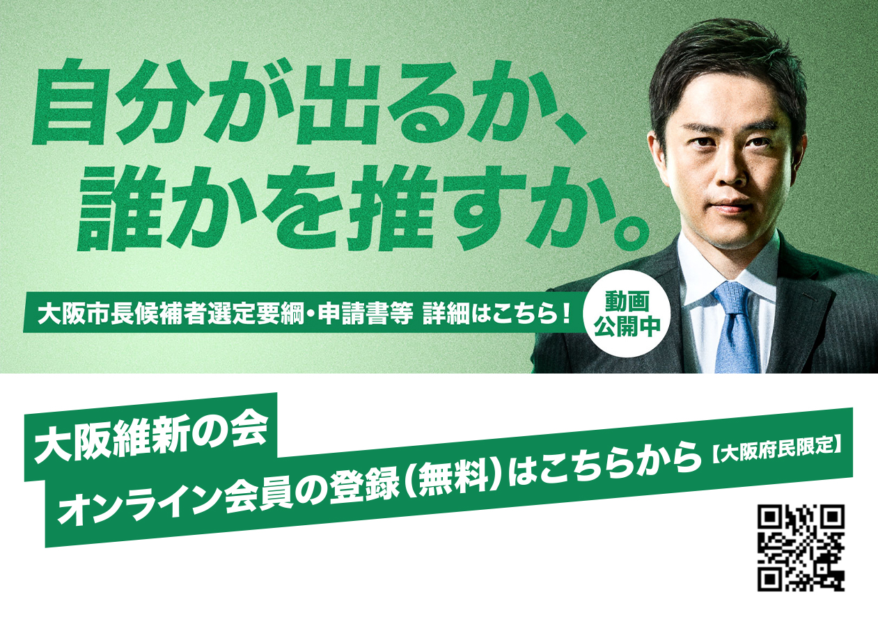 大阪維新の会は、令和5年執行予定の大阪市長選挙に向けて候補者公募を開始いたします。