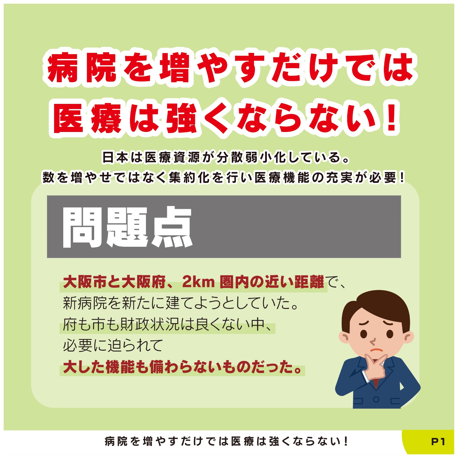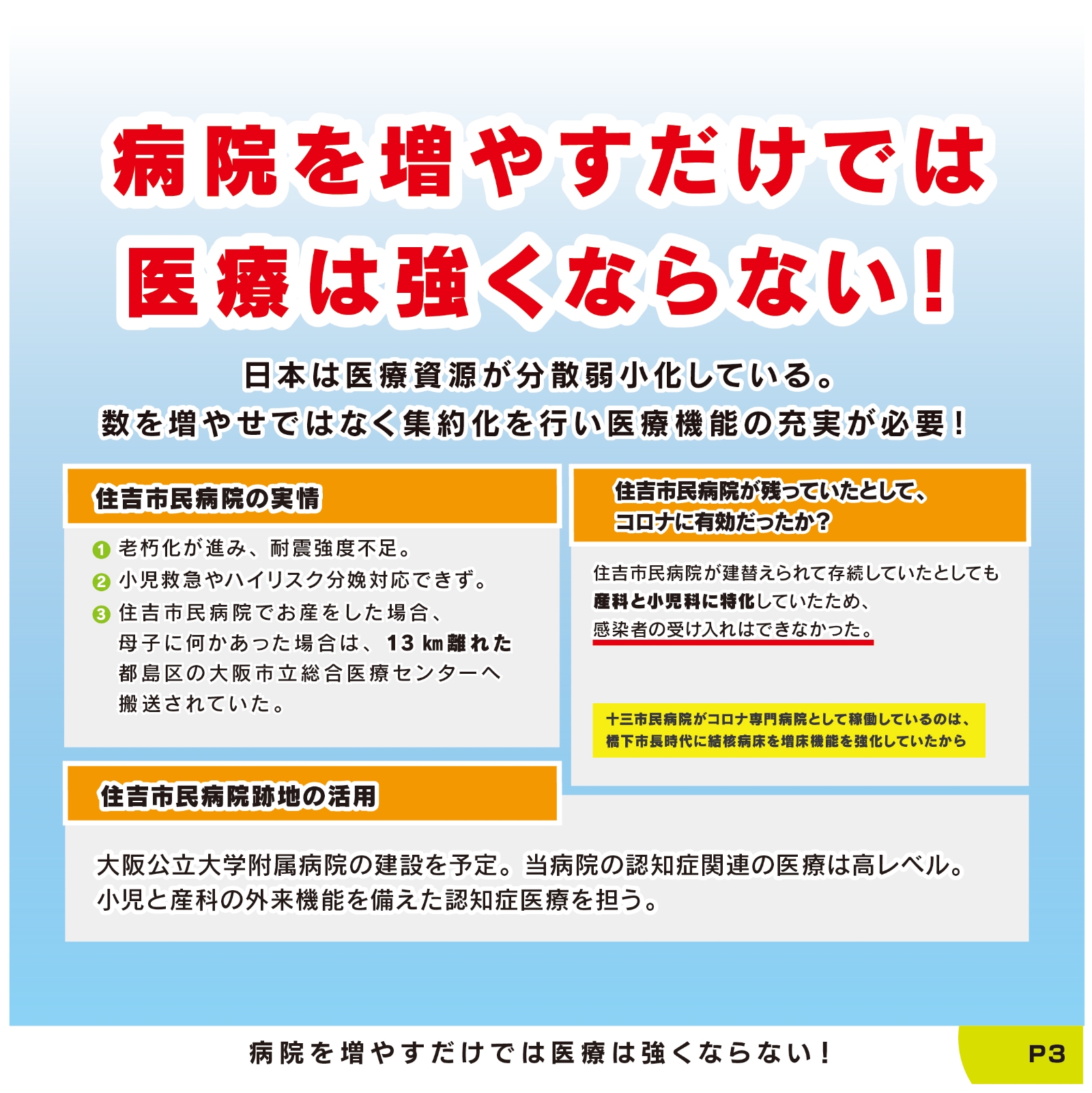 住吉市民病院には感染症対応病床がなく、コロナ禍にあっても十三市民病院の様な専用化は実現できなかった。また感染症病床を持つ大阪市立北市民病院が廃止されたのは民主党政権時代の2010年。維新発足以前の平松市長時代である。